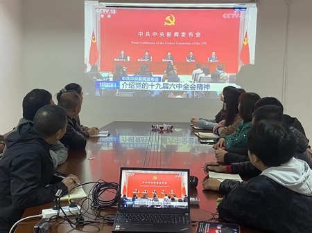 11月12日上午10時,投資集團(tuán)黨支部組織全體黨員第一時間觀看中共中央新聞發(fā)布會介紹黨的十九屆六中全會精神,學(xué)習(xí)領(lǐng)會黨的十九屆六中全會精神。